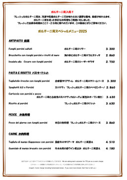 フレッシュポルチーニ茸が入荷しました!! この時期にしか味わえないフレッシュなポルチーニ茸をぜひご賞味ください! スペシャルコースもご用意しております。 併せてご利用ください