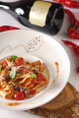 *スパゲティ モルタデッラハムと野菜のペペロンチーノSpaghetti A.O con mortadella e verdure